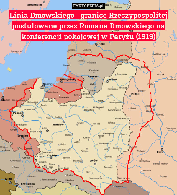 Propozycja ta została odrzucona, a w późniejszym okresie wycofał się z niej także autor, który podczas negocjacji kończących wojnę polsko-bolszewicką opowiedział się przeciwko włączeniu do Polski m.in. Tłumaczył to chęcią budowy państwa bez mniejszości narodowych, a de facto motywem była chęć uniemożliwienia realizacji koncepcji federacyjnej Józefa Piłsudskiego nawet w ograniczonym zakresie. W konsekwencji w traktacie ryskim granicę polsko-sowiecką wytyczono w odległości ok. 30 km na zachód i północ od Mińska. Obszar Polski według koncepcji Dmowskiego miał wynosić ok. 447 000 km² z 33-milionową populacją. Dmowski szacował, że ok. 70% ludności będą stanowili Polacy.