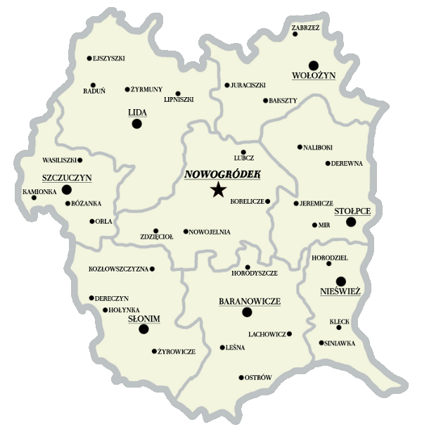 Nowogródek leżał w przeszłości na granicy Litwy i Jaćwieży. Gród został założony po 1241 r. Mendog ustanowił tu stolicę państwa litewskiego, przyjął w nim chrzest i w 1253 r. koronował się na króla Litwy. W XIII w. był kilkakrotnie atakowany przez sąsiadów z Rusi i Tatarów. W 1314 r. tutejszy zamek próbowali zdobyć Krzyżacy. Najazdy powtarzały się w XIV i XV w. W 1569 r. miasto stało się stolicą województwa. W XVII i XVIII w. Nowogródka nie omijały liczne najazdy, pożary. Po rozbiorach Nowogrodek stracił na znaczeniu. Pozycje miasta wojewódzkiego odzyskał dopiero w okresie międzywojennym. Dzisiaj jest 30-tysięcznym miastem, leżącym na uboczu i nieco sennym.